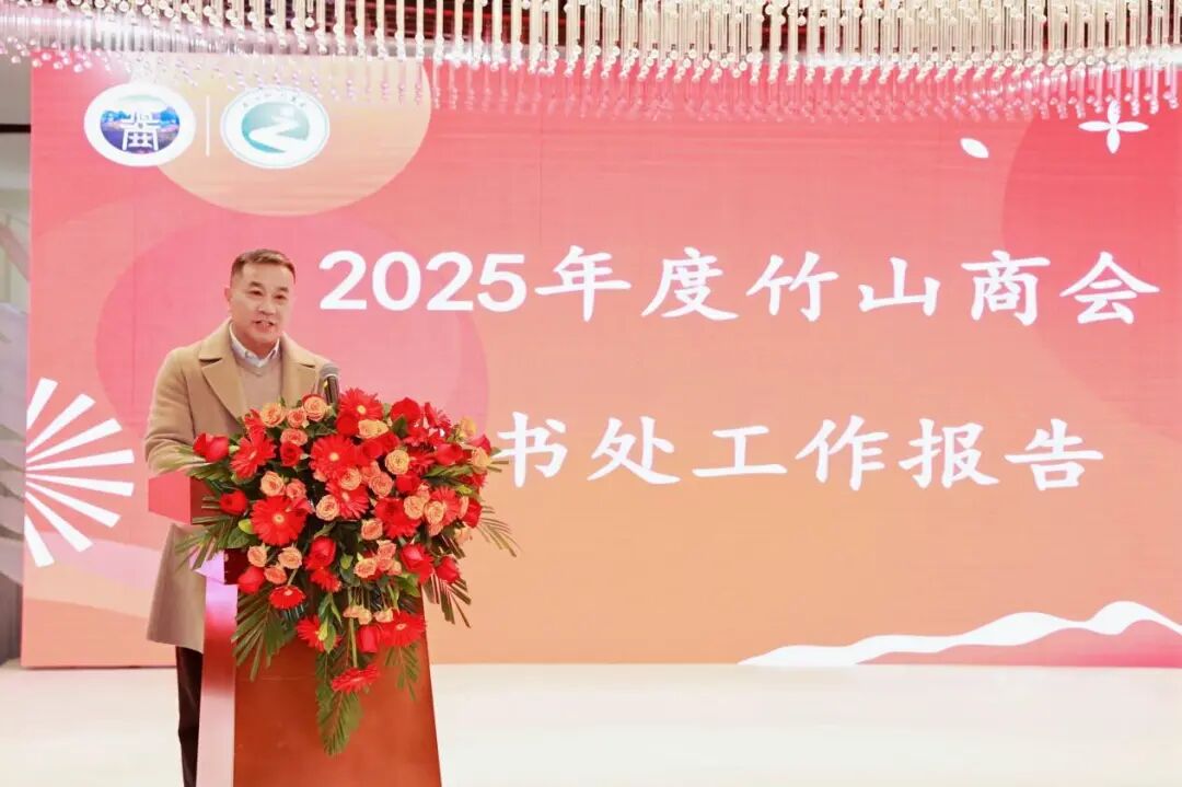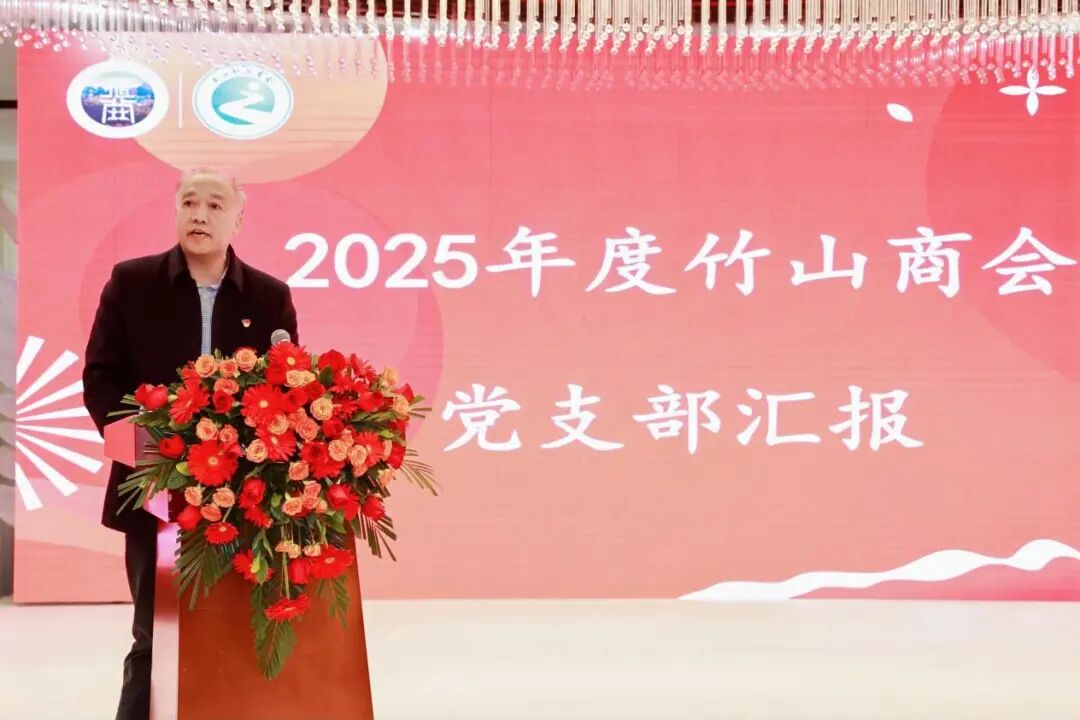 竹山商会党建指导员周远斌以“凝聚红色力量共绘‘智绿’新篇”为题,用“四份高分答卷”总结竹山商会党建工作成效:抓实思想建设与班子建设,解决企业难题、推动回乡投资,践行社会责任,打造特色文化品牌,以文化聚人心、以党建促发展。