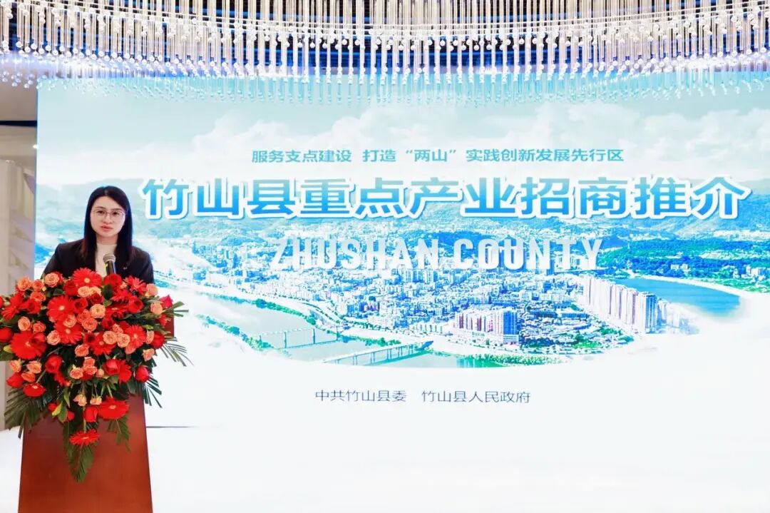 县招商服务中心副主任万红丽作竹山重点产业及政策推介,介绍绿松石、低空经济等资源优势,解读政府产业招商优惠政策,诚邀广大企业家投资共赢。