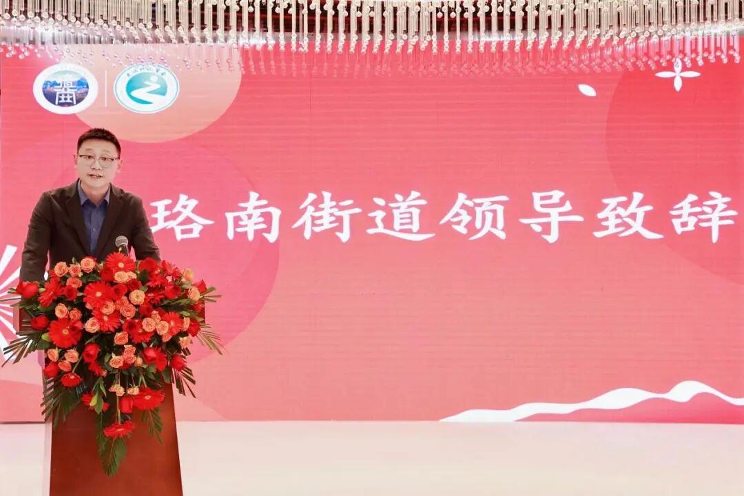 珞南街道党工委副书记明迪尧在致辞中,首先充分肯定珞南商会作为市级“四好”商会、省级金牌调解组织的贡献,商会通过化解纠纷、引进外区企业、促进就业彰显了坚实社会担当。他表示“洪山竹山,山山相连”是情感与事业的深度交融,并对商会发展提出四点希望:一是强化政治引领,筑牢思想根基;二是投身新质生产力,提升核心竞争力;三是履行社会责任,在稳就业、乡村振兴等领域主动担当;四是加强品牌建设,持续提升影响力。他指出街道将始终做企业发展的“坚强支持者、贴心服务者”,持续深化“商会链”建设、优化营商环境,让企业家安心创业;同时呼吁各方深化合作,为区域高质量发展汇聚智慧、贡献力量。